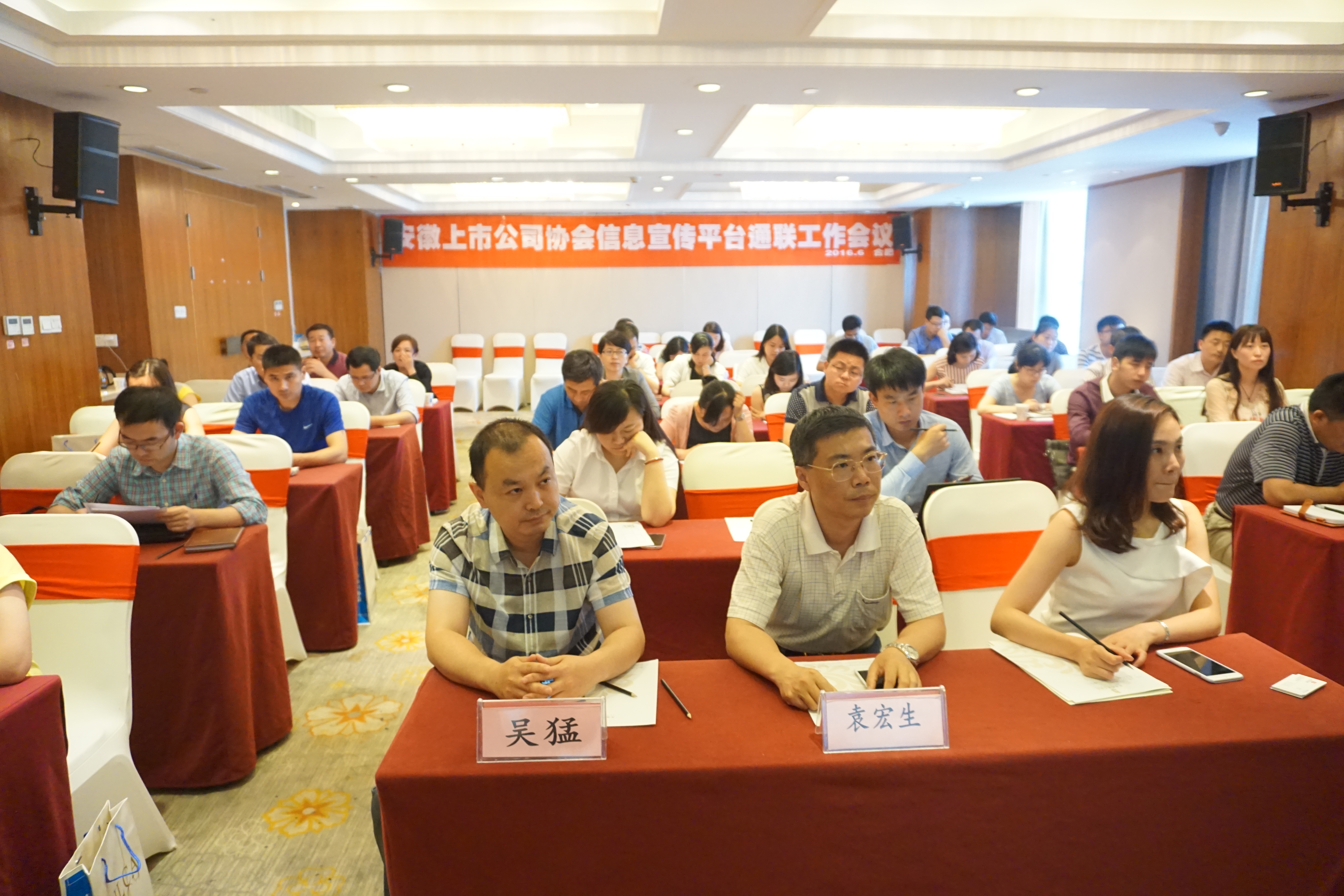 轄區(qū)52家上市公司負(fù)責(zé)宣傳工作的有關(guān)人員共60余人參會,安徽證監(jiān)局有關(guān)處室派員光臨指導(dǎo),安徽上市公司協(xié)會副會長、秘書長袁宏生主持會議。