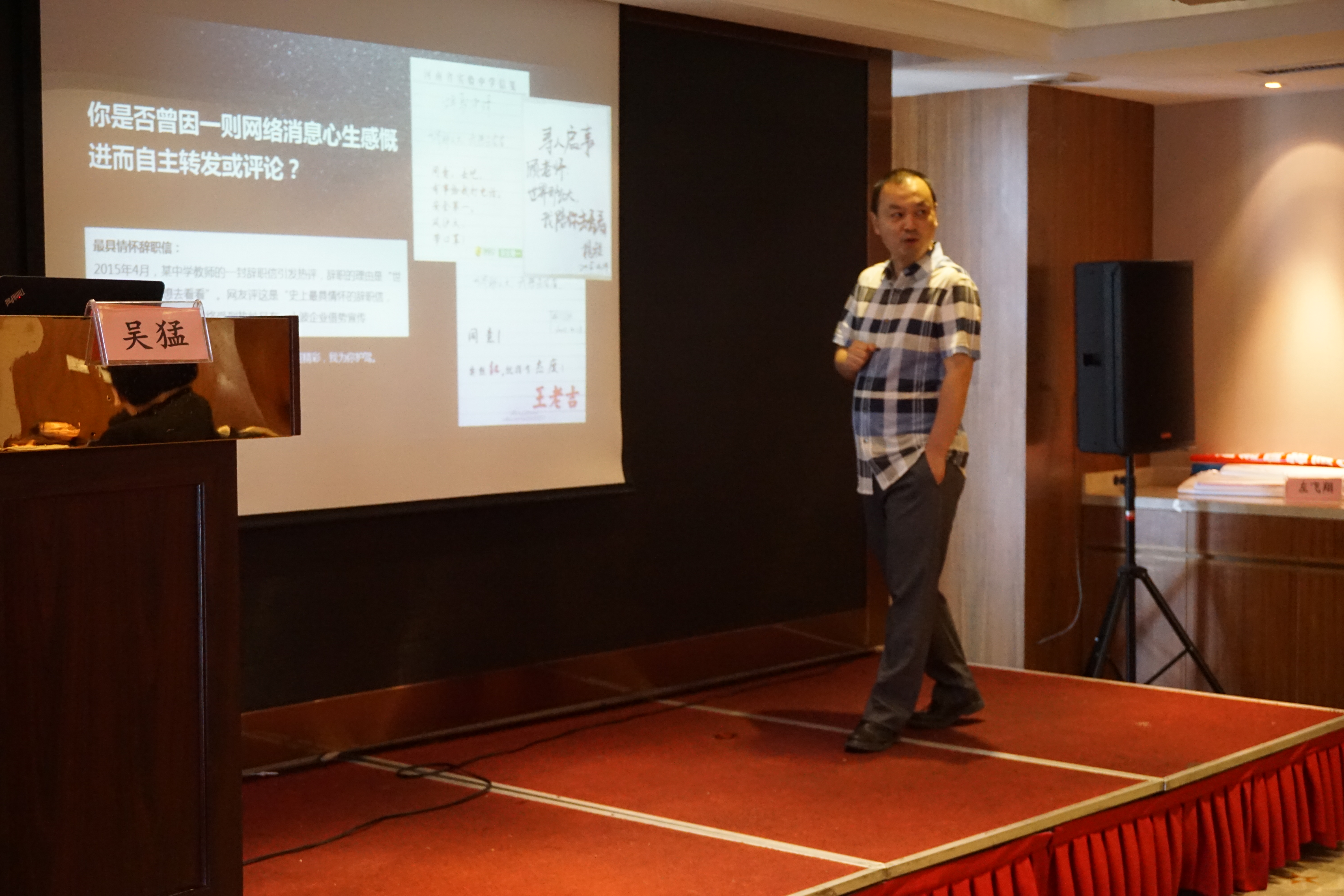 會議特別邀請智揚(yáng)公關(guān)顧問機(jī)構(gòu)總裁吳猛先生做“新媒體營銷分享”的講座。向大家介紹了“什么是新媒體”,同時結(jié)合新媒體相關(guān)案例詳細(xì)解讀了新媒體下的營銷方式和新媒體下的危機(jī)處理等,讓參會代表受益匪淺。