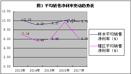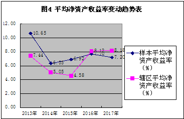 從營(yíng)收和利潤(rùn)變動(dòng)趨勢(shì)看,5年來混改公司平均營(yíng)業(yè)收入、凈利潤(rùn)變化趨勢(shì)大體呈現(xiàn)出V型,轉(zhuǎn)折點(diǎn)在2015年,調(diào)研發(fā)現(xiàn),上述趨勢(shì)變化很大程度上反映了轄區(qū)鋼鐵、煤炭等大型國(guó)企“去產(chǎn)能”供給側(cè)結(jié)構(gòu)性改革同混合所有制改革結(jié)合的效應(yīng)體現(xiàn)。2016年起營(yíng)業(yè)收入、盈利水平逐步上升,特別是2017年混改公司平均營(yíng)業(yè)收入、凈利潤(rùn)增長(zhǎng)勢(shì)頭好于轄區(qū)總體平均水平(見圖1、2)。這與混改公司混改時(shí)間分布(表1)大體吻合,表明混改一定程度上帶動(dòng)公司業(yè)績(jī)的上升。從盈利指標(biāo)考察,混改公司平均銷售凈利率在2016年達(dá)到峰值,之后呈下滑趨勢(shì),但2017年較2016年平均銷售凈利率下降2.74%,遠(yuǎn)低于轄區(qū)平均下降幅度(37.86%)。混改公司凈資產(chǎn)收益率變動(dòng)趨勢(shì)呈V型,2015年為折點(diǎn),2017年略有下降,下降幅度大于轄區(qū)平均。這表明混改一定程度上促進(jìn)公司銷售盈利水平的提高,但對(duì)投入資本盈利能力改善效果不理想。馬鋼股份、銅陵有色等大型國(guó)企通過縮短管理鏈條、引入員工持股等,在2015年的轉(zhuǎn)型中平穩(wěn)過渡,并保持了經(jīng)營(yíng)業(yè)績(jī)的持續(xù)增長(zhǎng)。