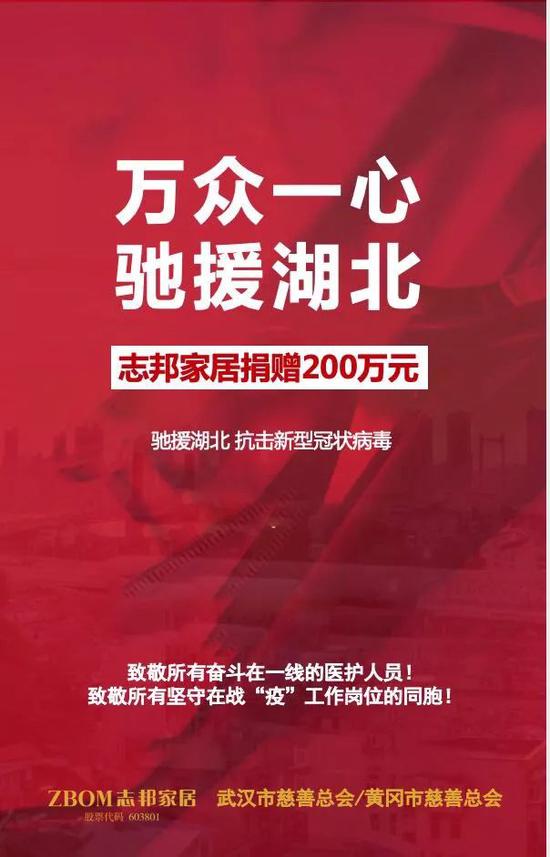 志邦家居捐贈(zèng)200萬(wàn)元馳援湖北抗擊疫情