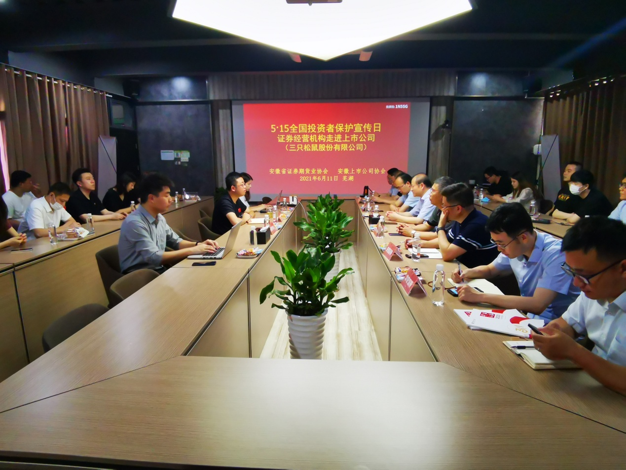 6月11日上午,全體人員走進(jìn)上市公司--三只松鼠。公司高管對(duì)公司和行業(yè)的基本情況、科技創(chuàng)新、市場(chǎng)動(dòng)態(tài)、未來(lái)發(fā)展戰(zhàn)略等方面作了細(xì)致介紹,并與大家就生產(chǎn)經(jīng)營(yíng)、商業(yè)模式創(chuàng)新、行業(yè)動(dòng)態(tài)等一系列問(wèn)題進(jìn)行了深入充分的互動(dòng)交流。